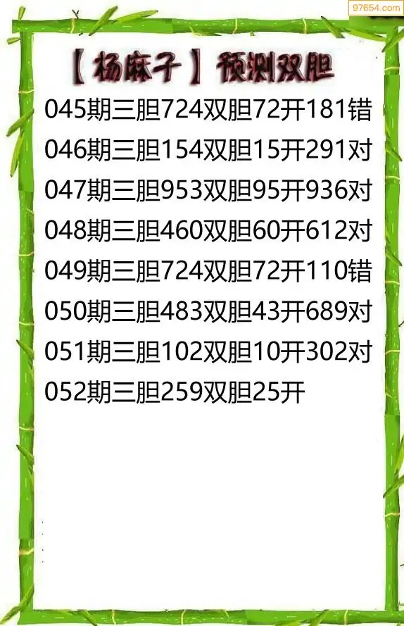 26052期杨麻子_福彩胆码计算方法