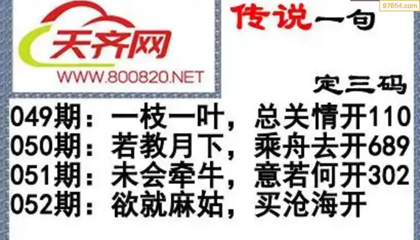 福彩3d26年052期字谜传说一句定三码