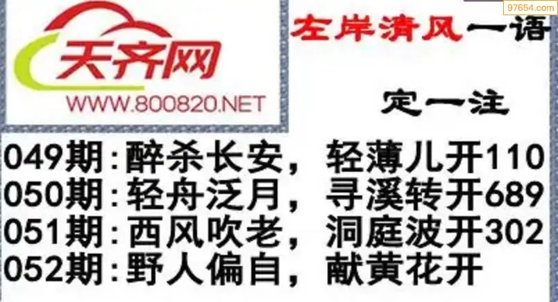 福彩3d左岸清风26年052期一语定一注