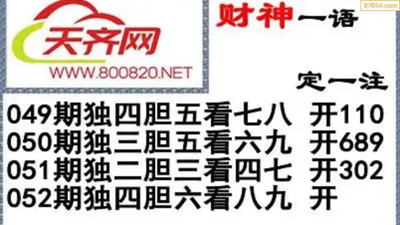 彩票3d字谜052期雪山飞狐一语定一注