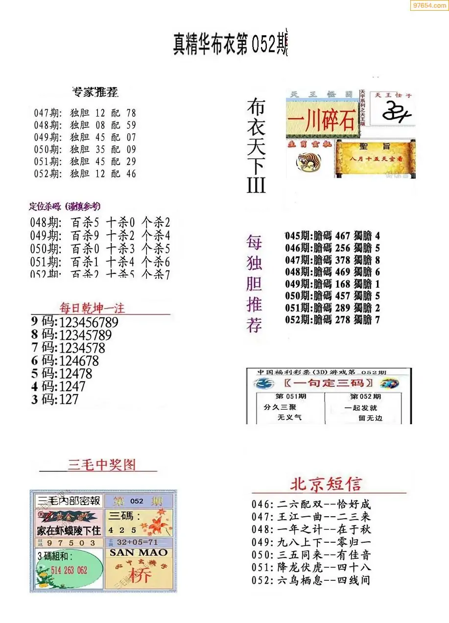 (8)26年052期今日3d各类彩报汇总