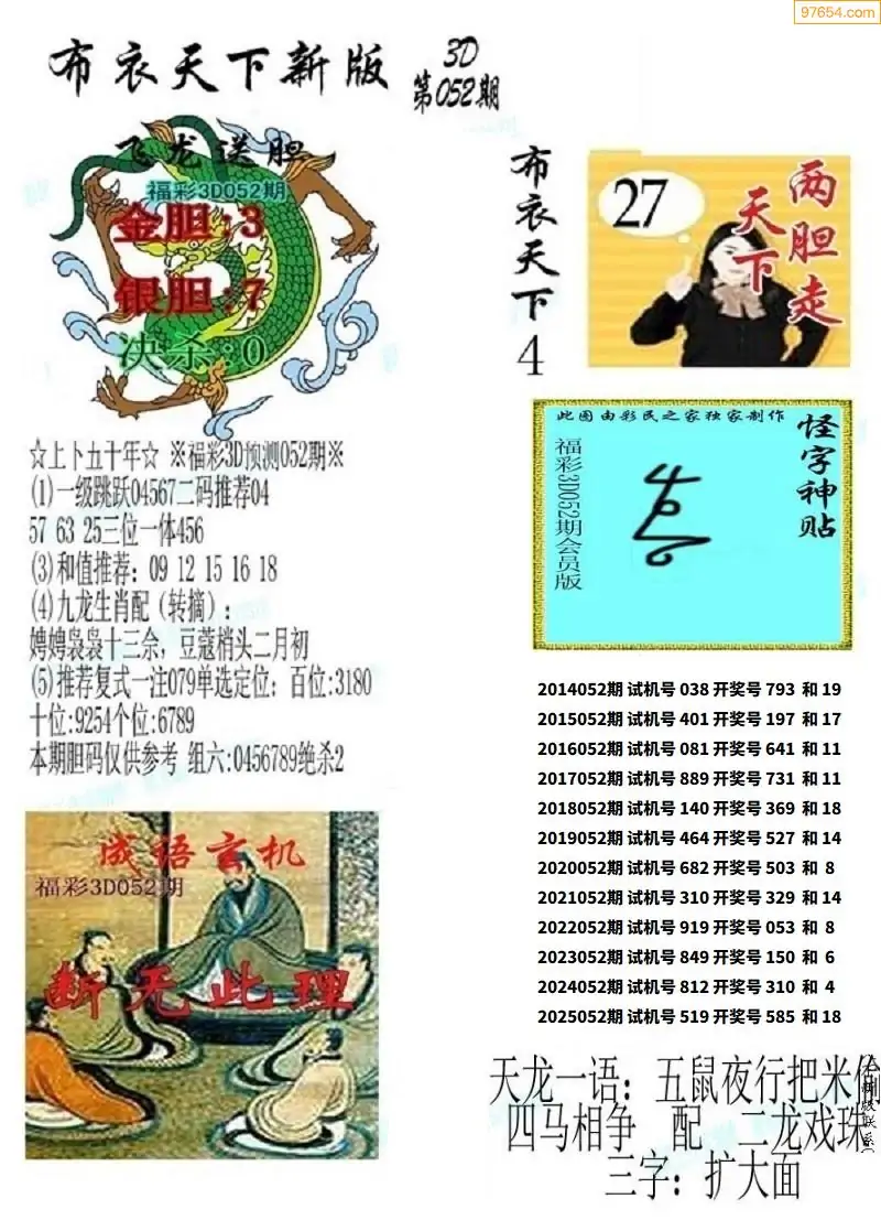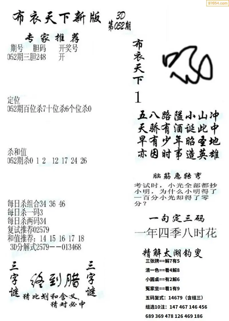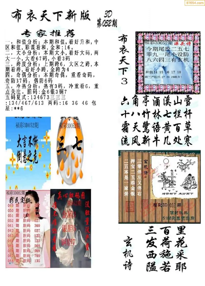 (2)26年052期本期3d图迷汇总_福彩3D图谜总汇图