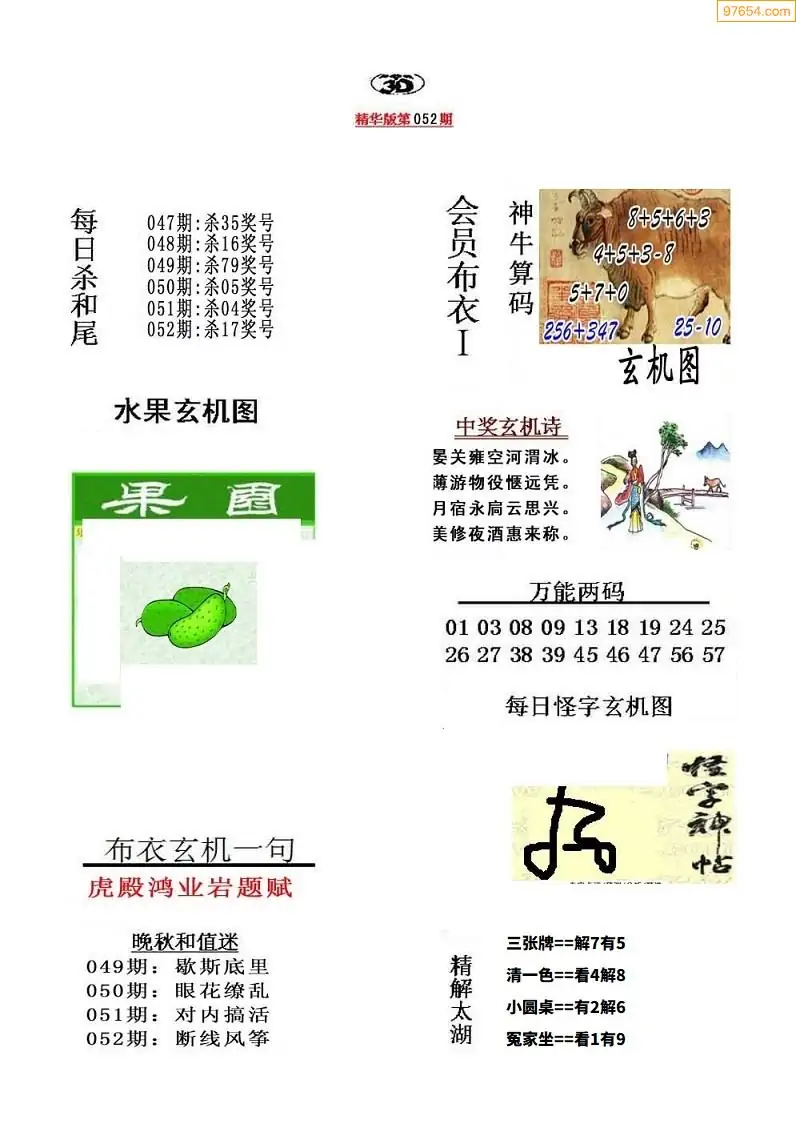 (5)26年052期福彩字谜图谜总汇