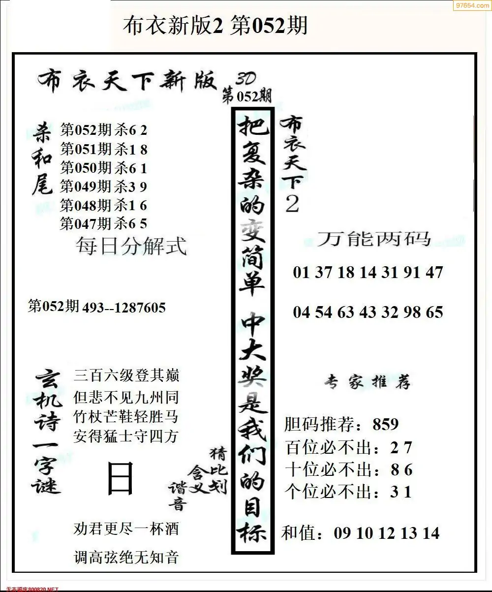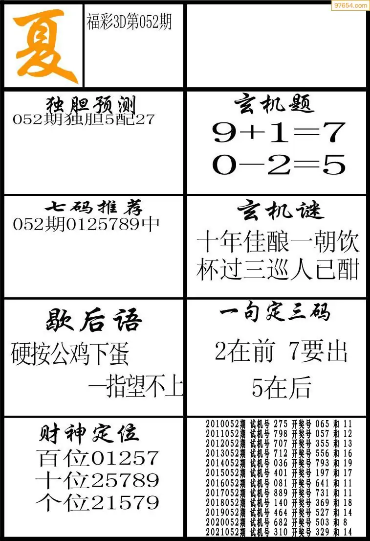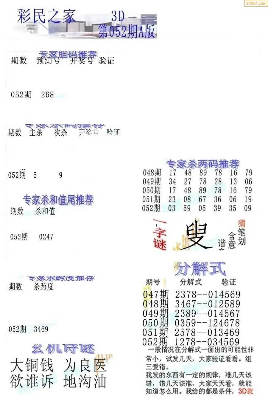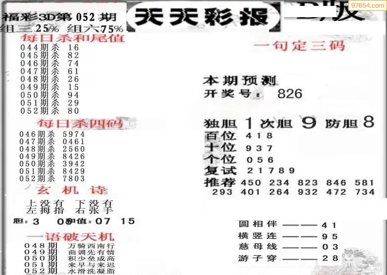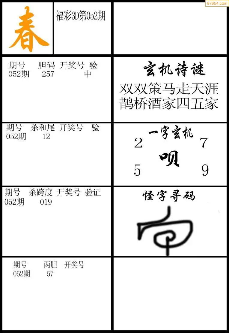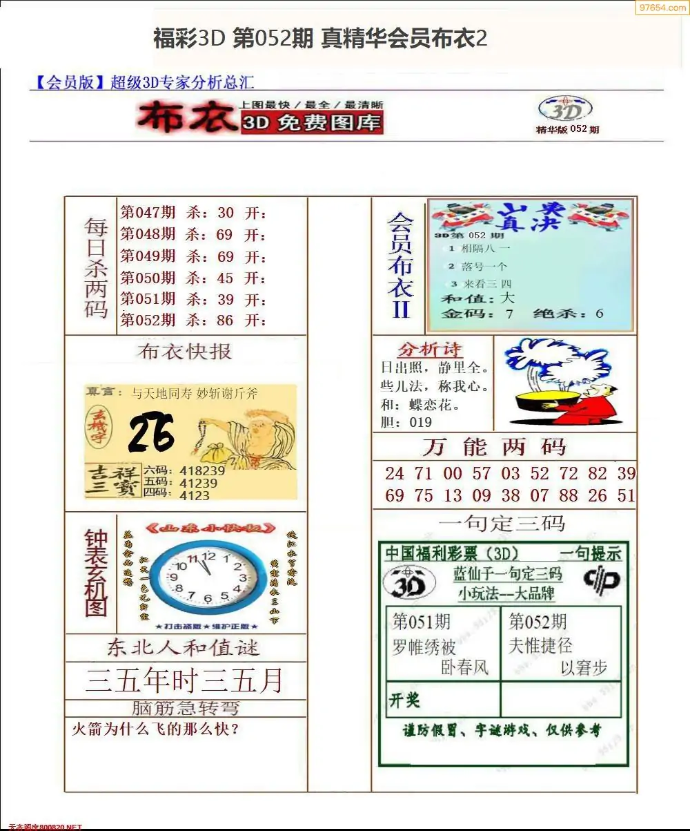 (2)26年052期本期3d图迷汇总_福彩3D图谜总汇图