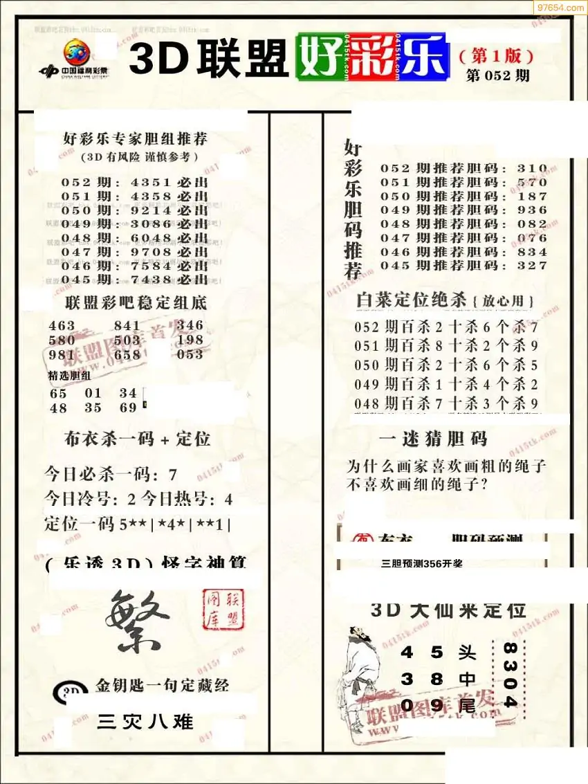 (3)2026052期3D预测总汇全图_福彩3d图谜字谜总汇
