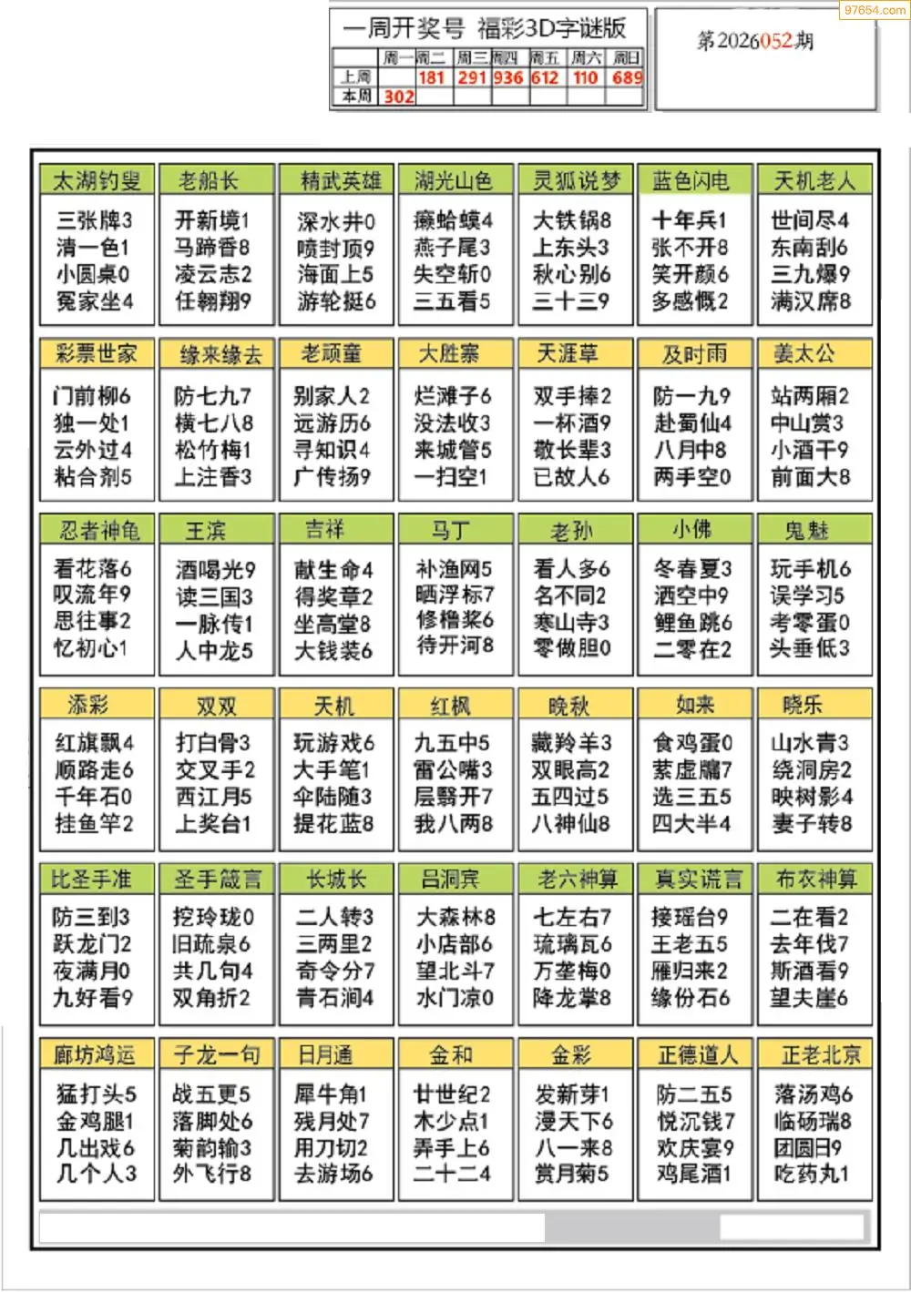 26年052期乐彩网摘专解太湖三字谜