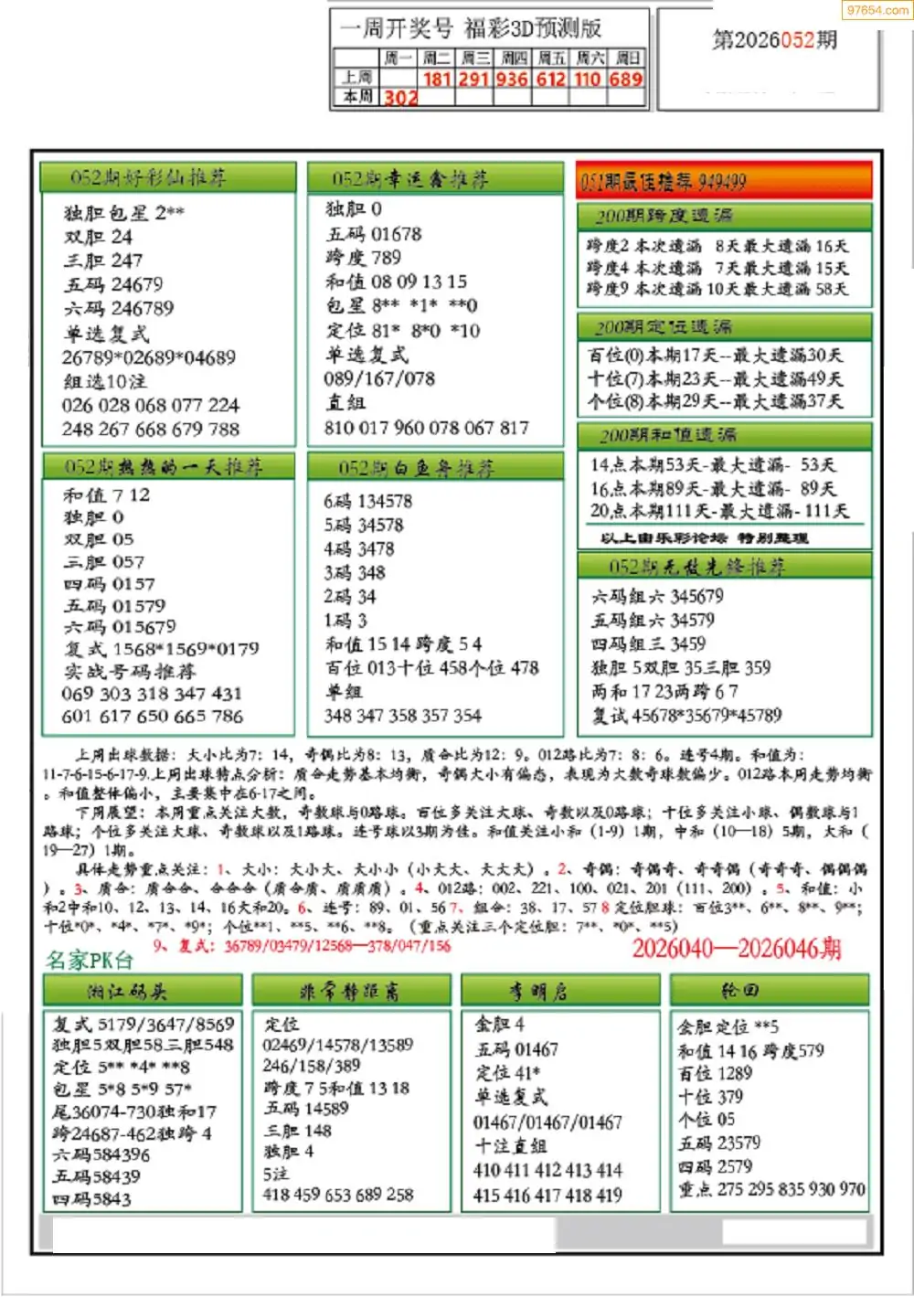 26年053期3D各板块资料整合汇总