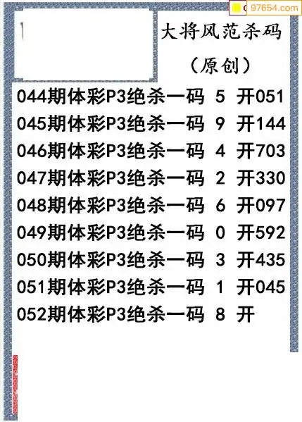 26年052期大将风范p3杀码体彩图谜