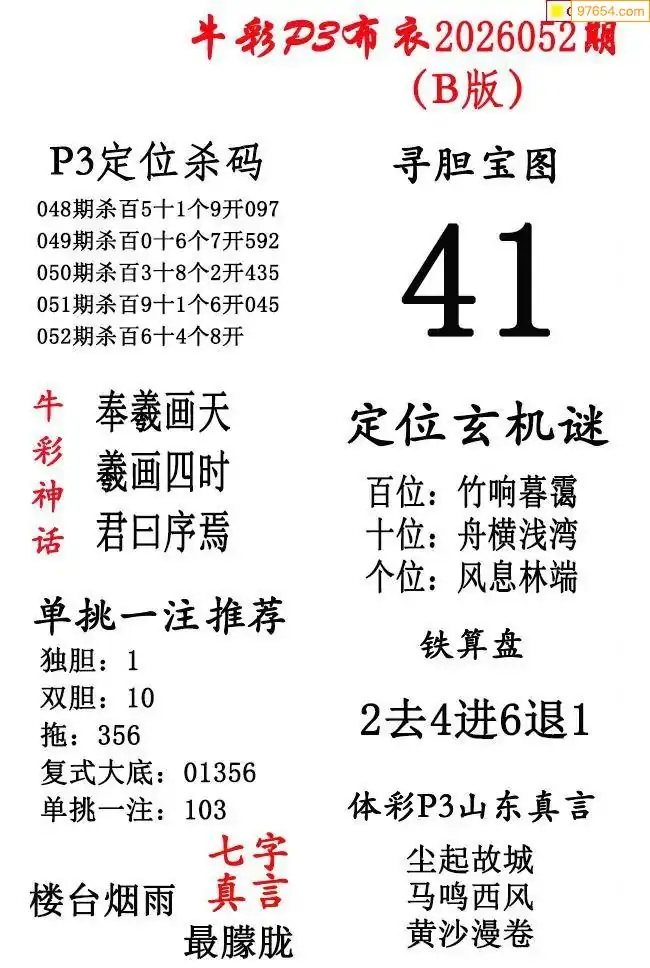 2026年052期北盟天机图+p3仙机图谜 _排三图谜专区