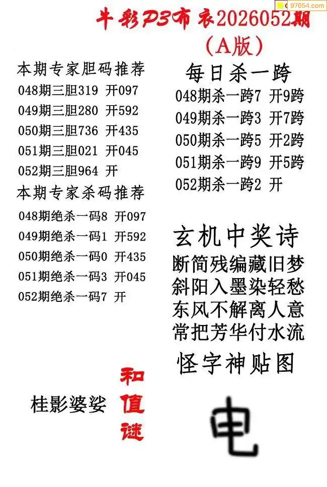 052期清清漫玄系列体彩p3图谜_排三图库p3图库打印