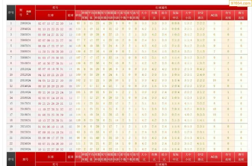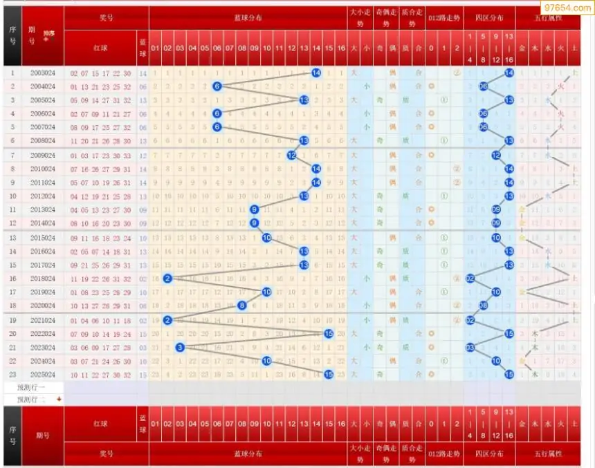 024期双色球历史同期图表+走势图