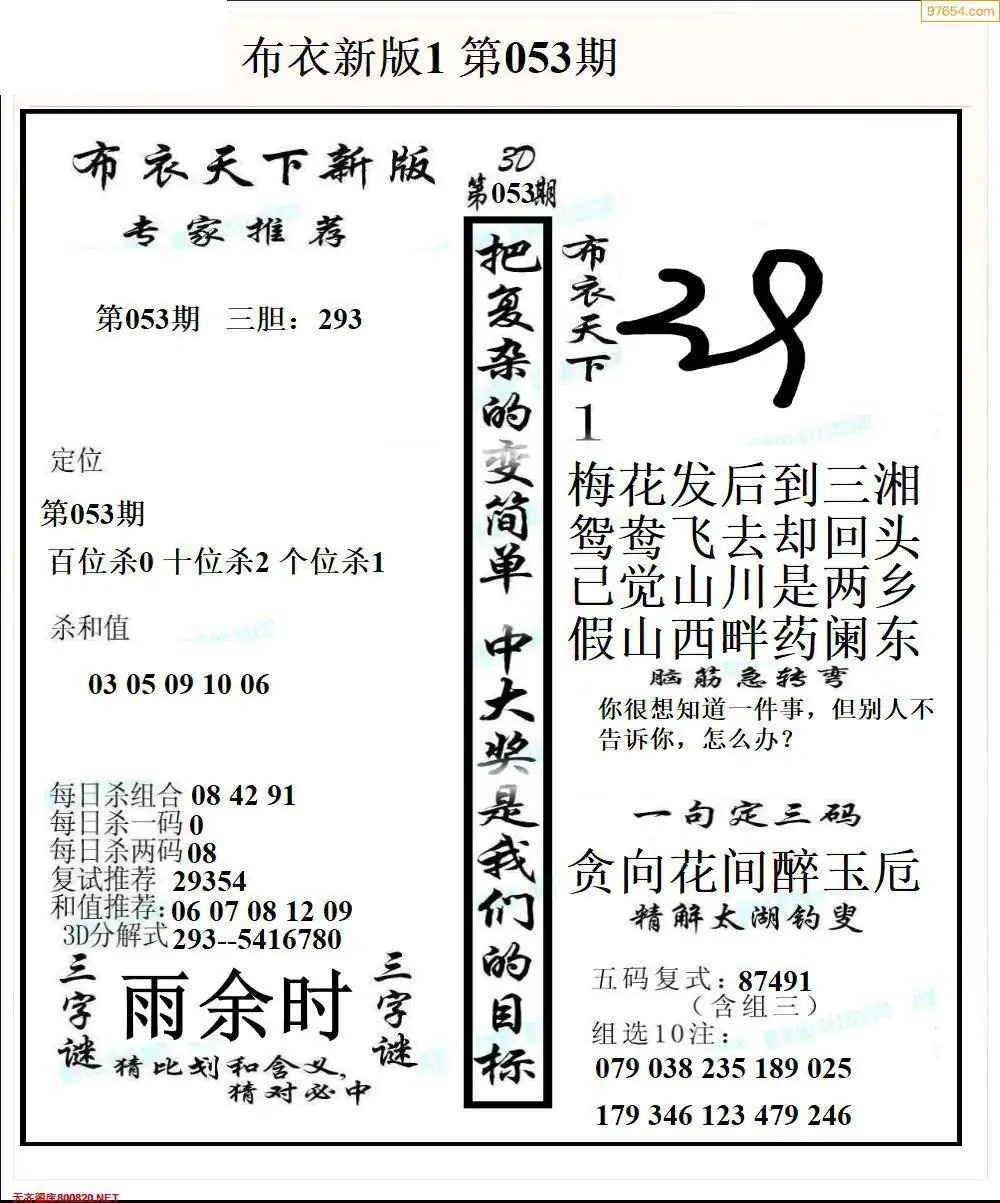 福彩053期3d真精华布衣+布衣早报(转载)