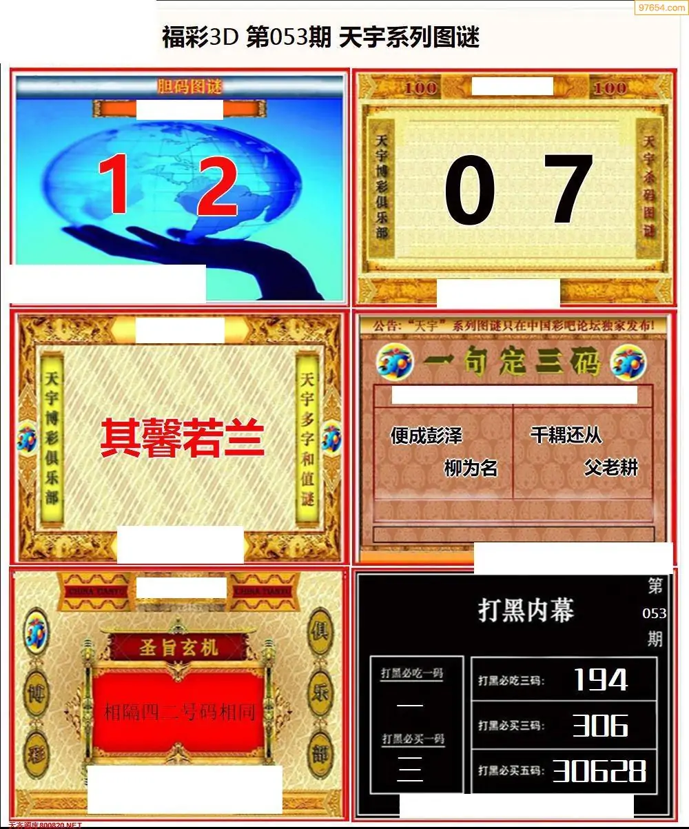 福彩3D053期天牛彩吧套图整合总汇