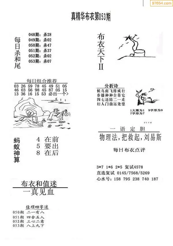 福彩053期3d真精华布衣+布衣早报(转载)