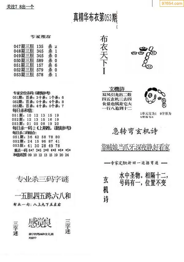 053期真版布衣神算专家推荐