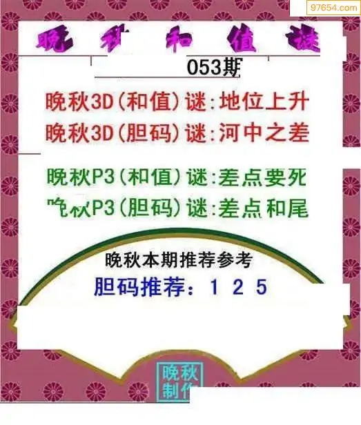 26053期晚秋和值谜胆码推荐