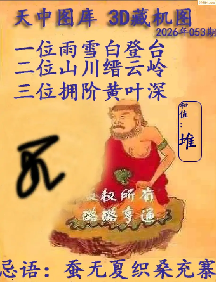福彩26年052期天中图库3D藏机图谜