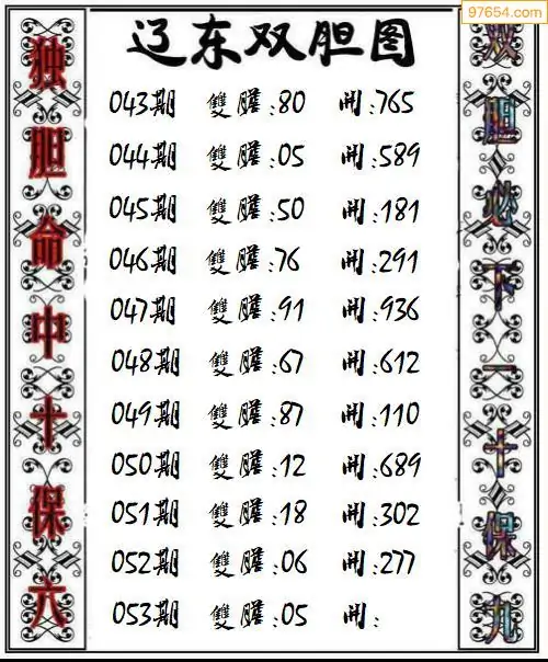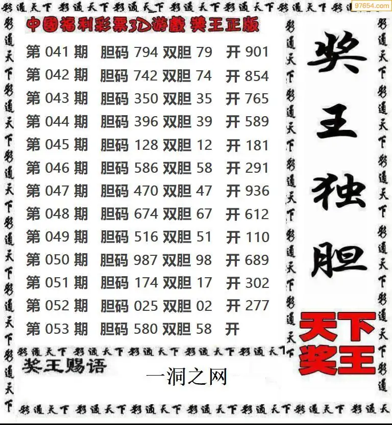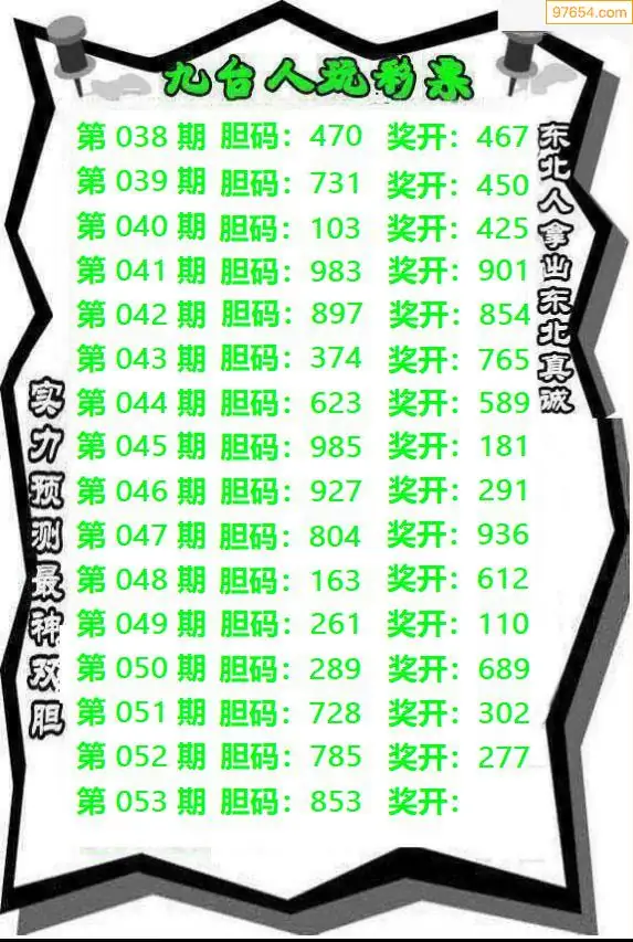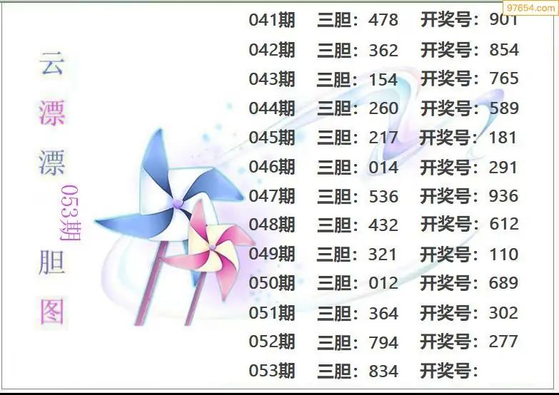 053期97654本站收集胆码出号预测