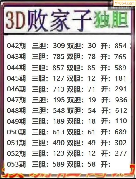 天齐网3d26年053期胆码图 胆:54