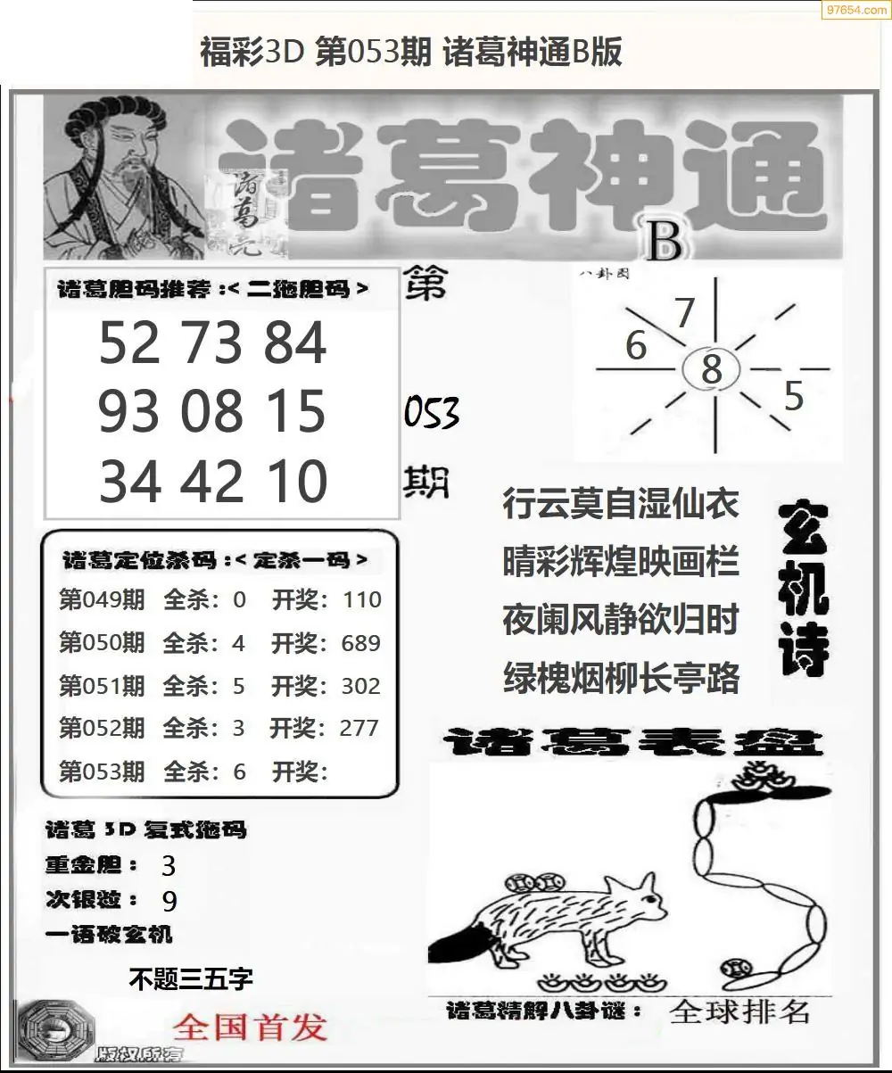 26053期福彩3d诸葛神通b