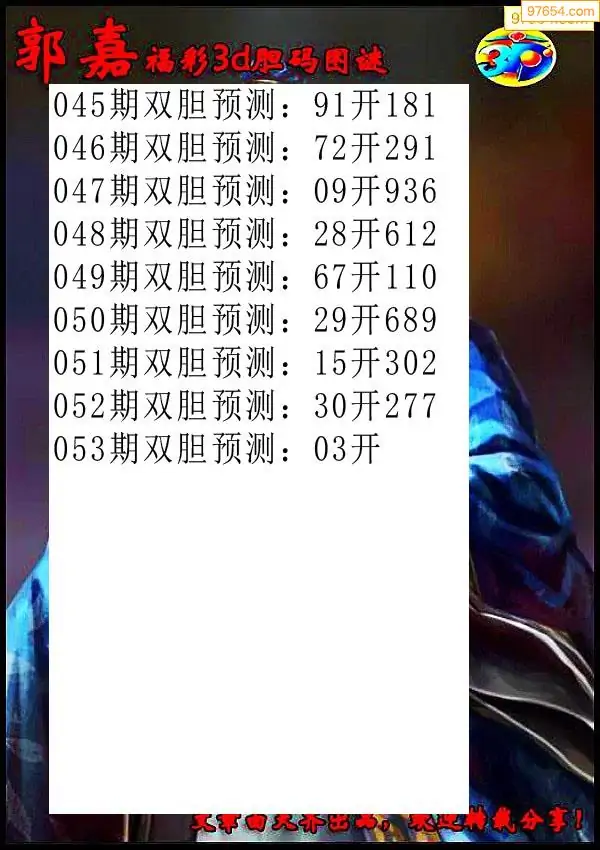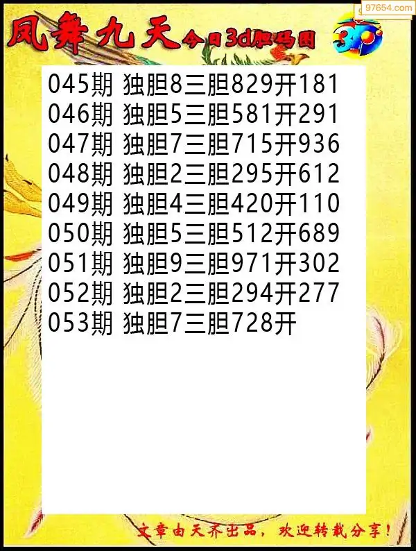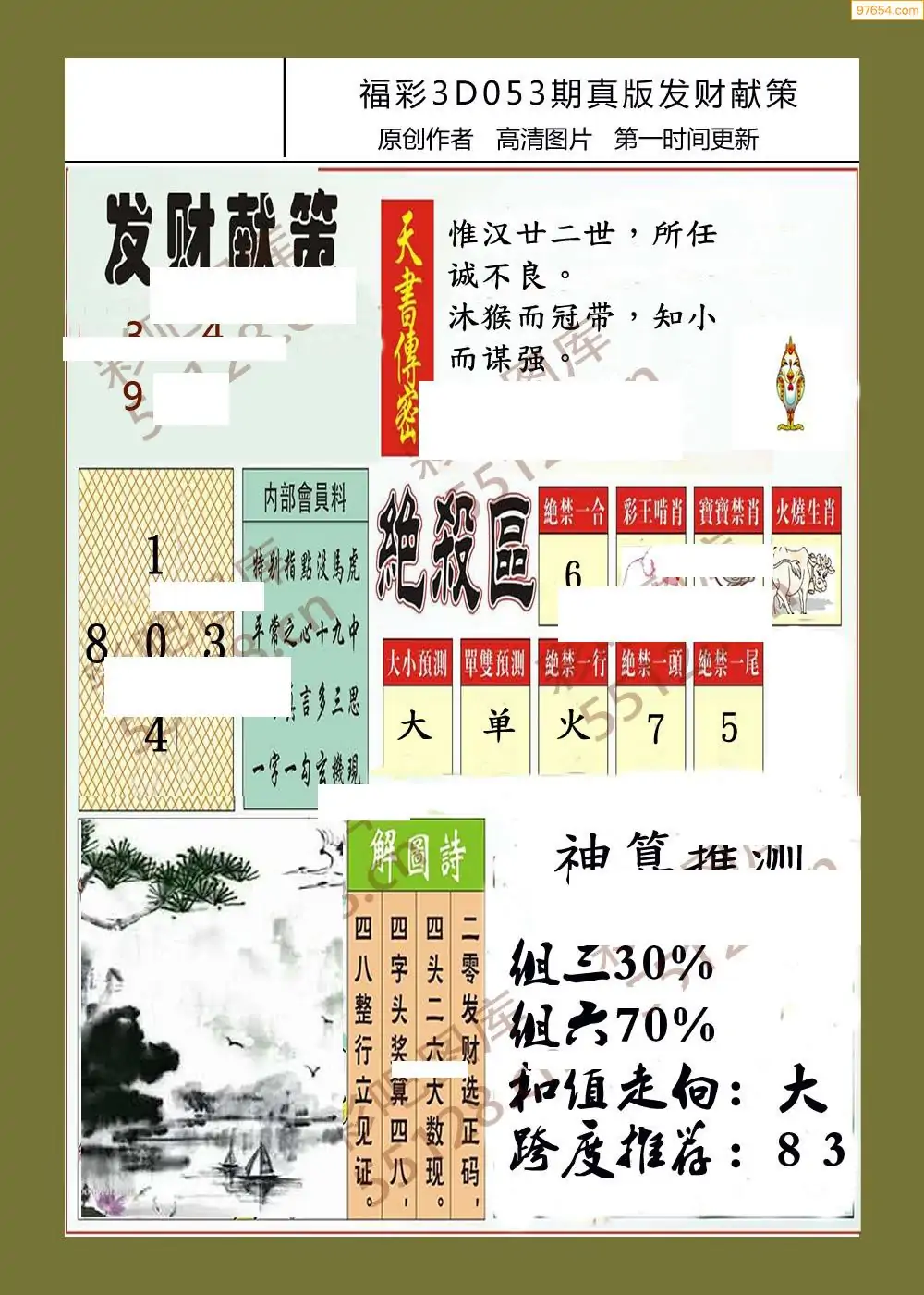 (8)26年053期今日3d各类彩报汇总