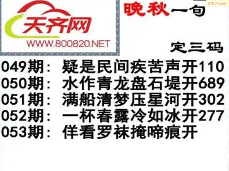 053期3d福彩今日晚秋字谜一句定三码