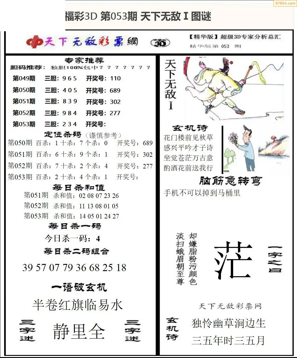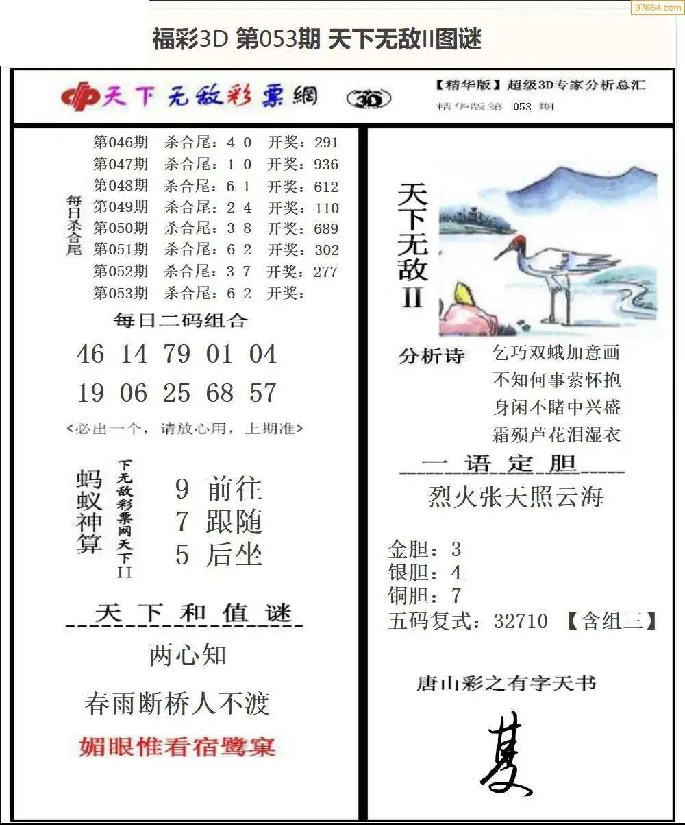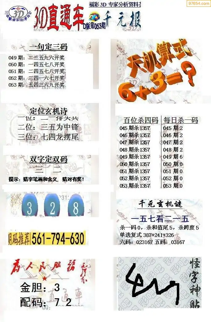 26年053期3d选号彩报图谜画谜