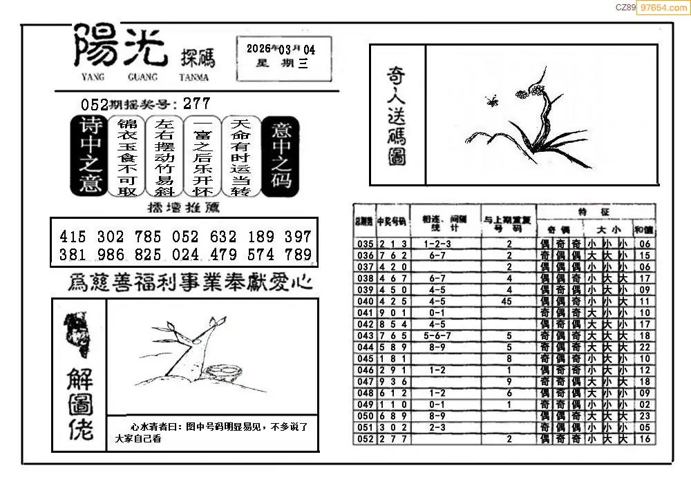 26053期福彩3D阳光探码图