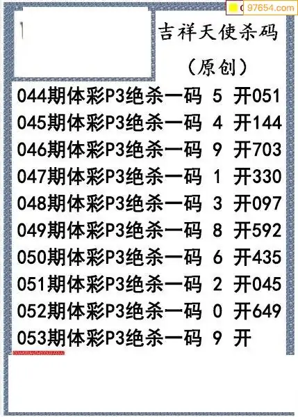 26年053期吉祥天使今日杀码图谜