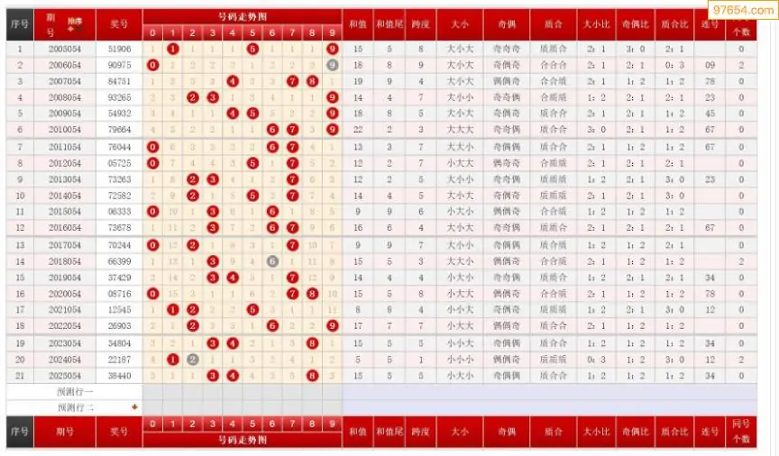 054期排列三历史号码对比图+数据走势分析
