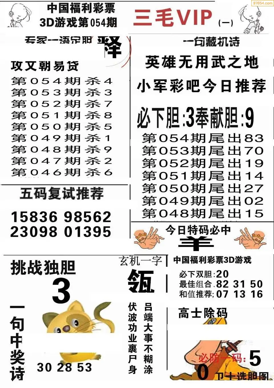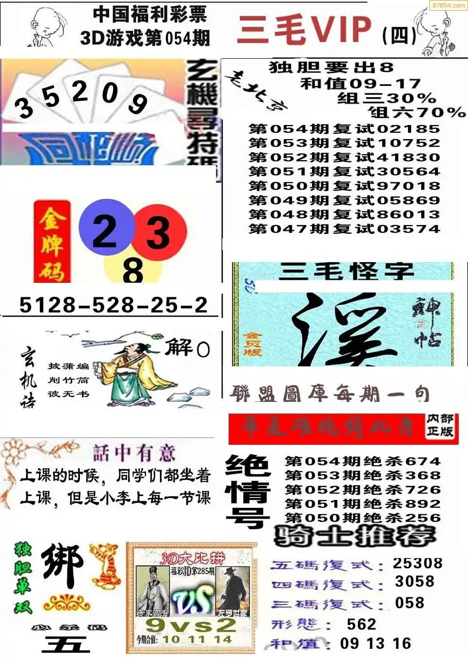 福彩3D054期天牛彩吧套图整合总汇