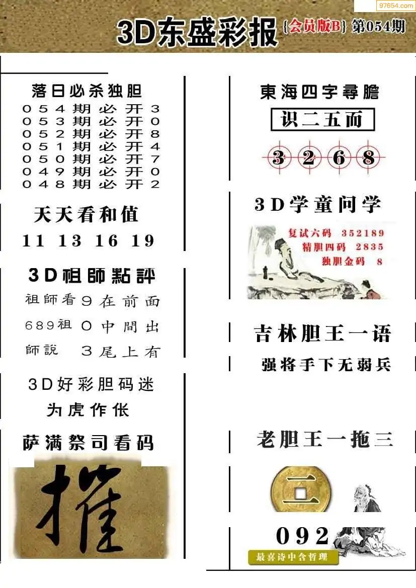 26054期今日3d三毛四版+东盛会员报