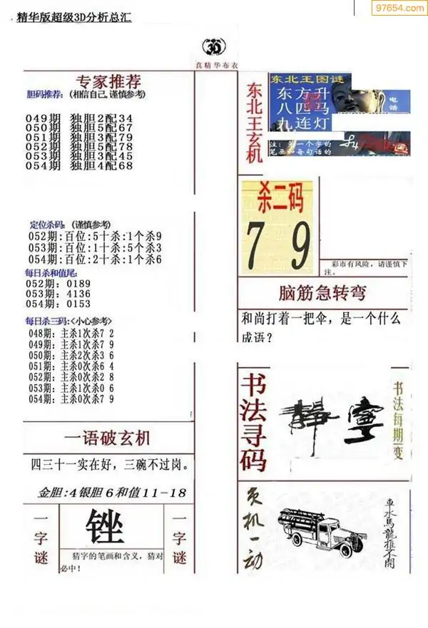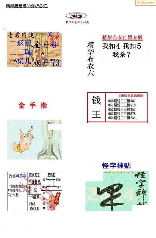 (3)2026054期3D预测总汇全图_福彩3d图谜字谜总汇