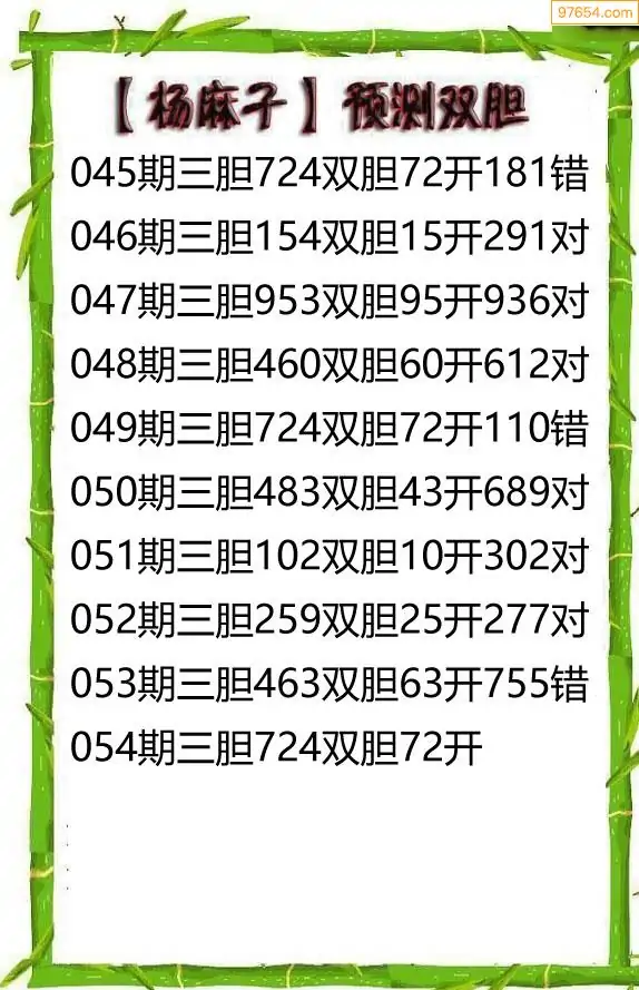 26054期杨麻子_福彩胆码计算方法