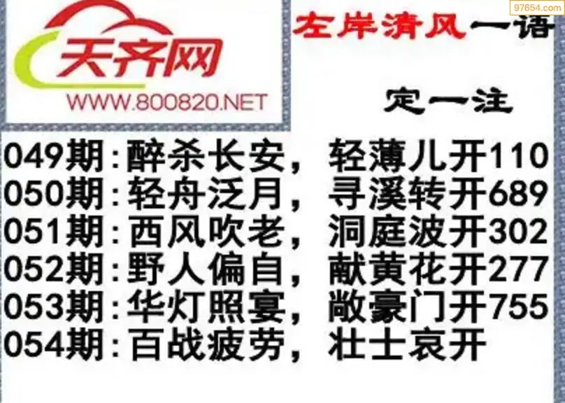 福彩3d左岸清风26年054期一语定一注