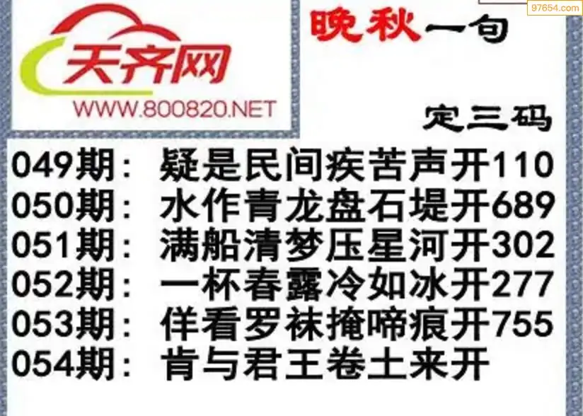 2026054期3d字谜汇总(晚间版)_福彩3D字谜推荐