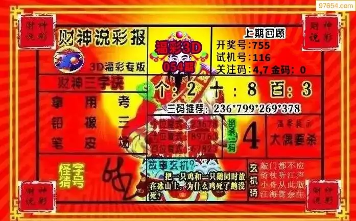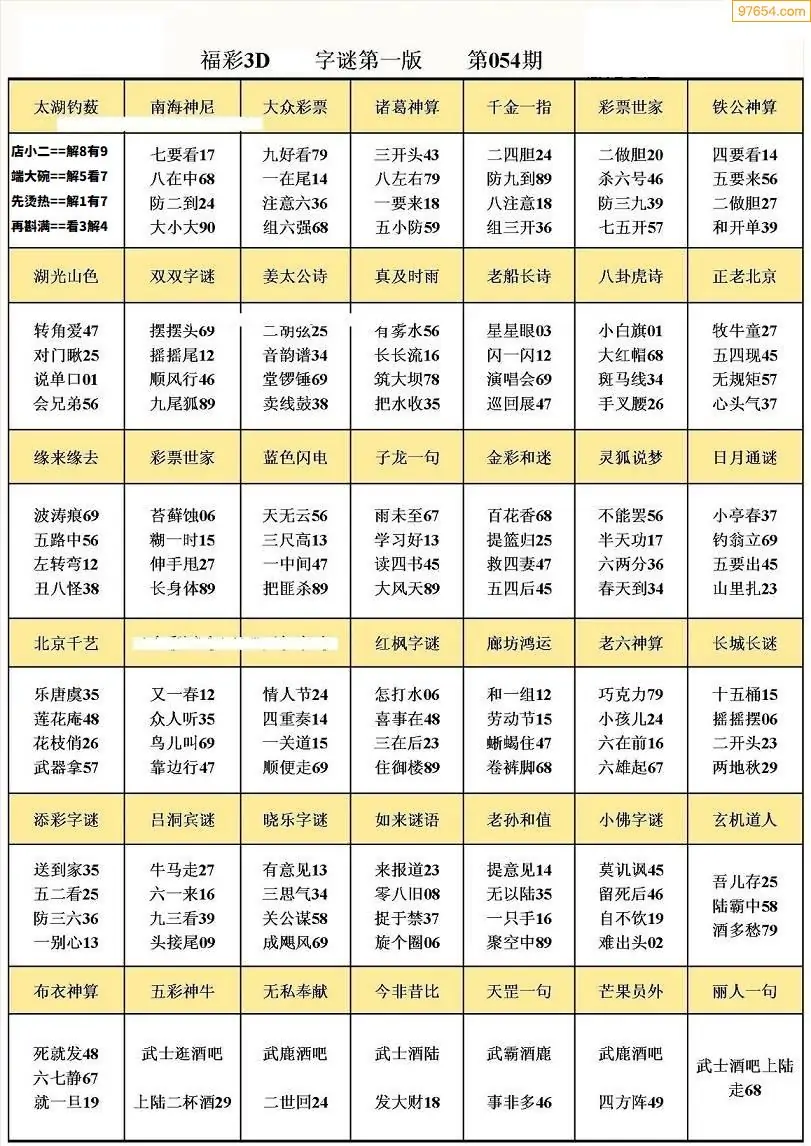(3)2026054期3D预测总汇全图_福彩3d图谜字谜总汇