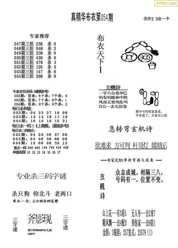 (2)26年054期本期3d图迷汇总_福彩3D图谜总汇图