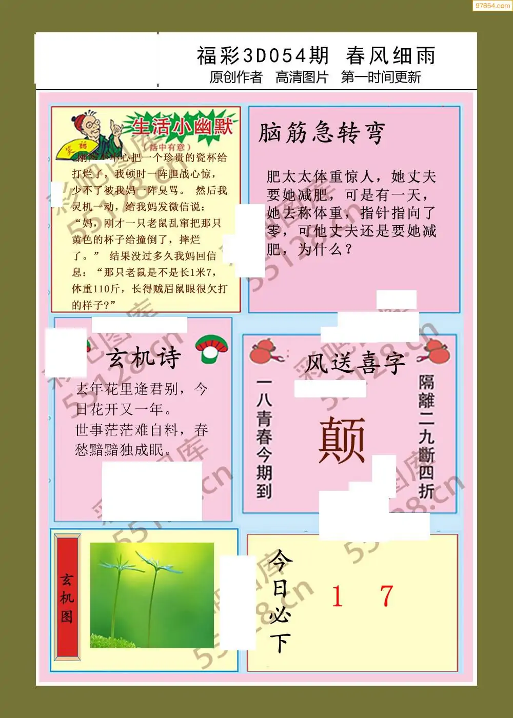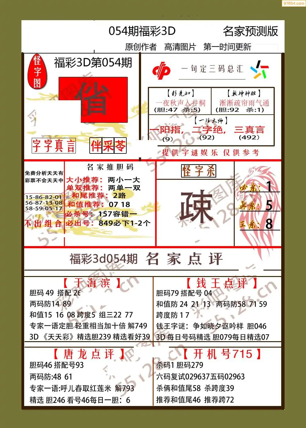 (3)2026054期3D预测总汇全图_福彩3d图谜字谜总汇