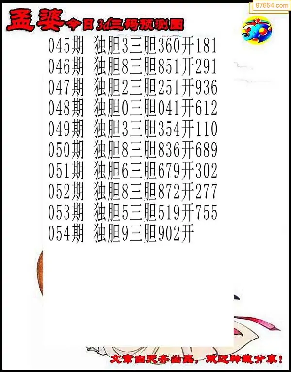 (2)26年054期本期3d图迷汇总_福彩3D图谜总汇图