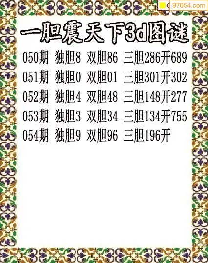 2026054期彩彩网3d原创图迷搜集(天中整理)