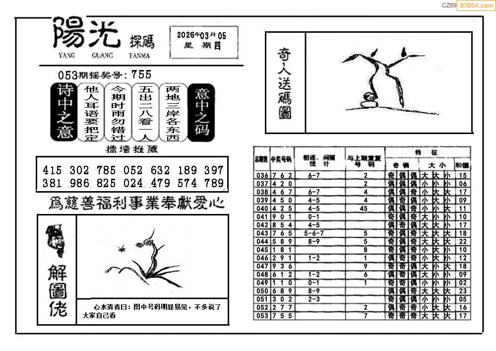 26054期福彩3D阳光探码图