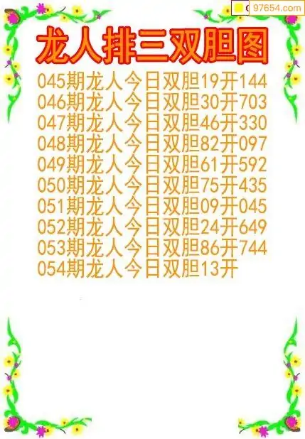 26054期龙人排列3双胆图