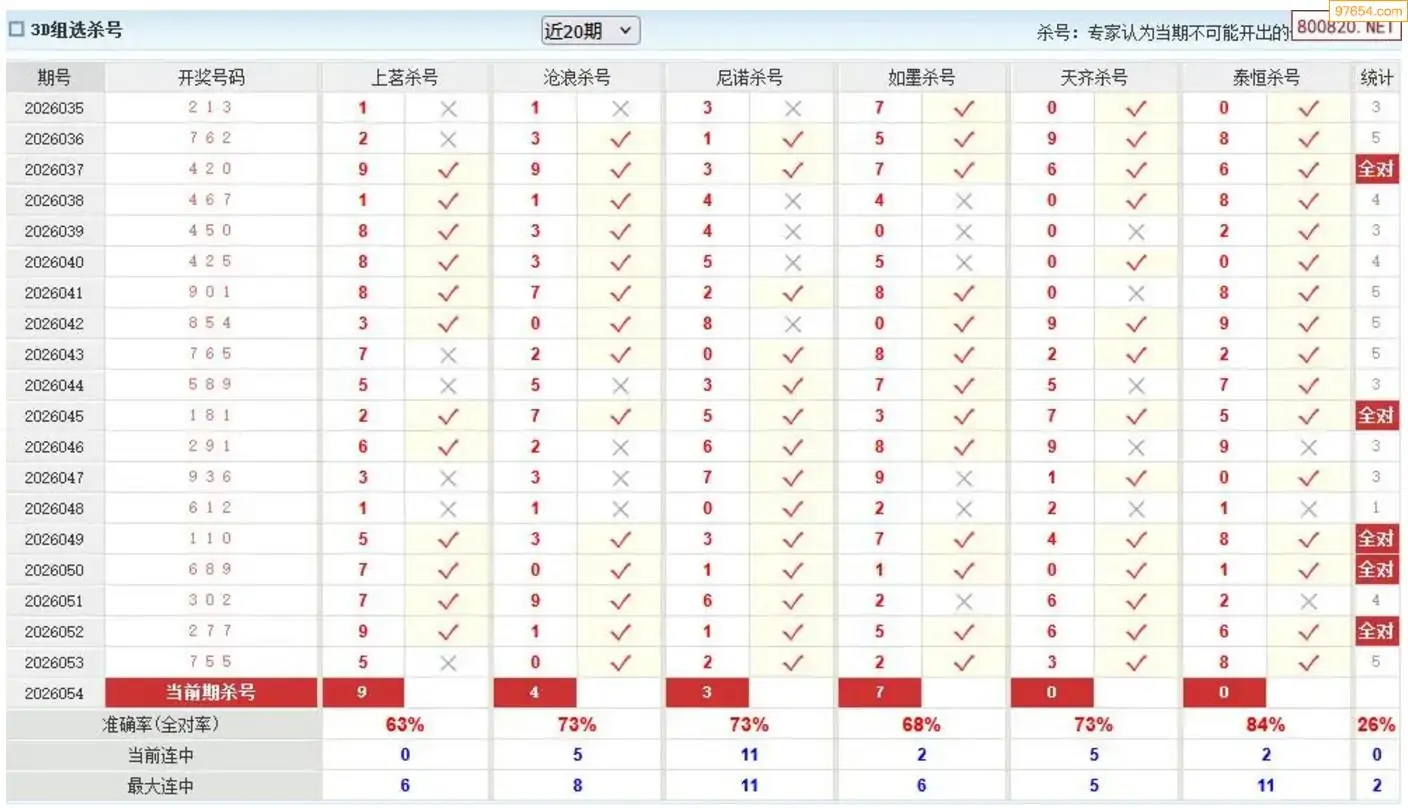 福彩3D26年054期于海滨杀独胆 8连中