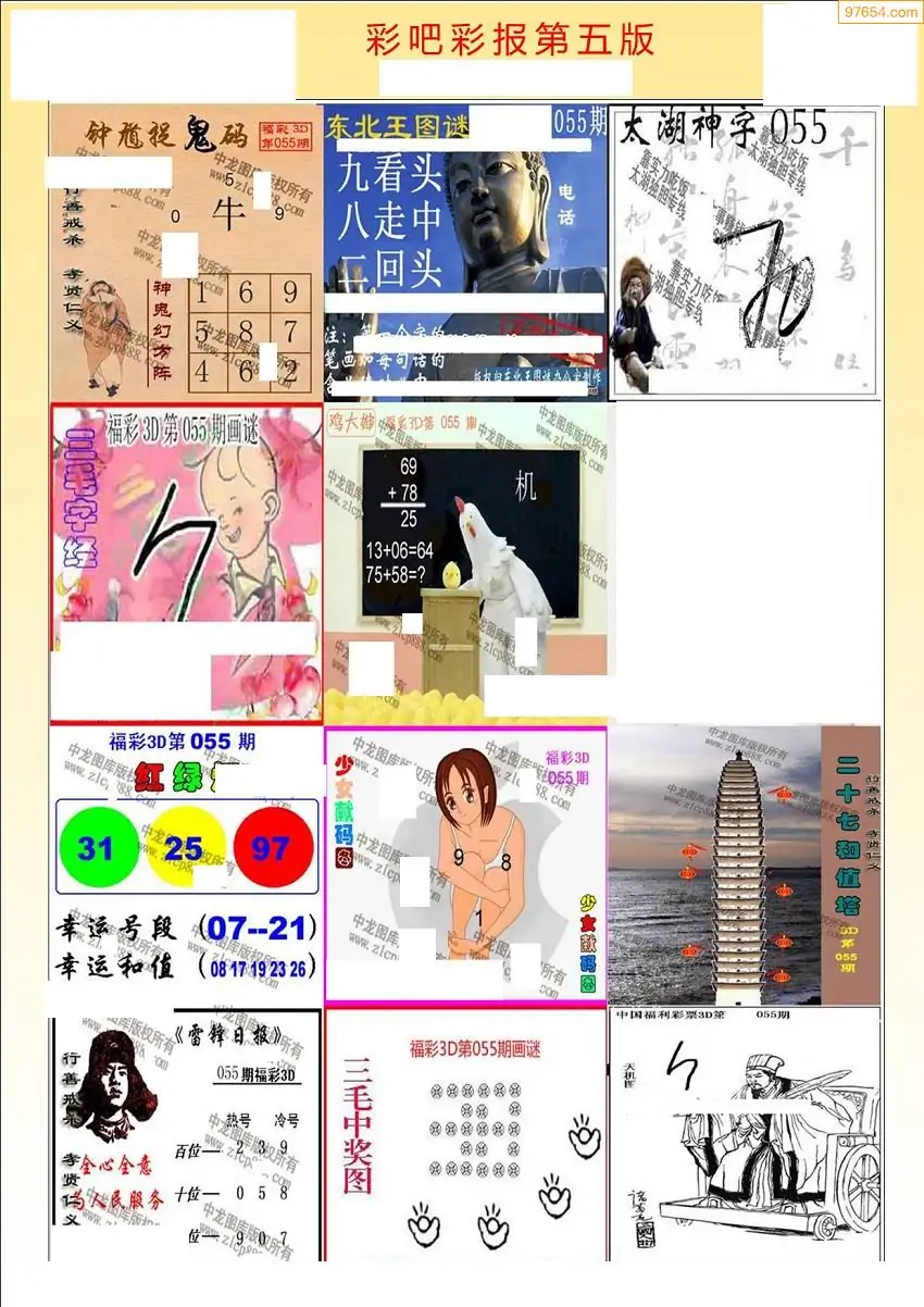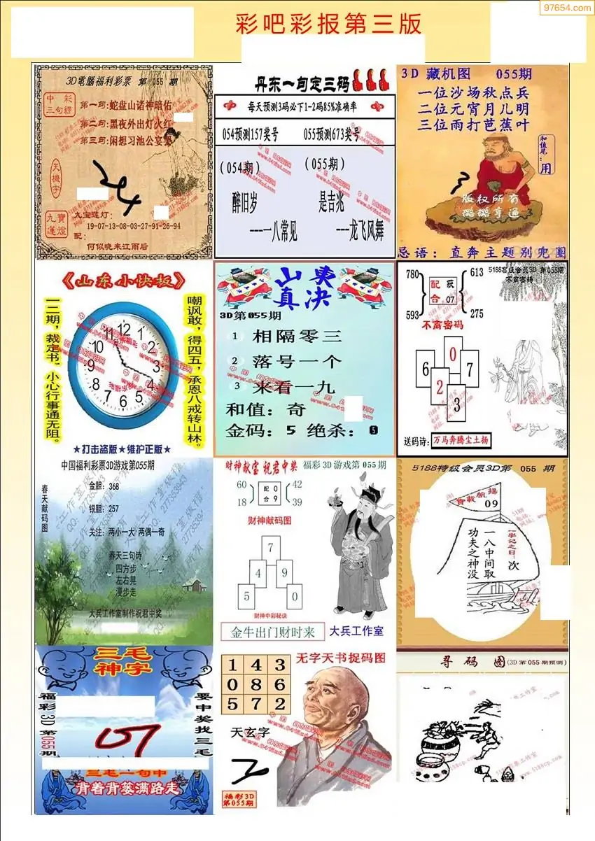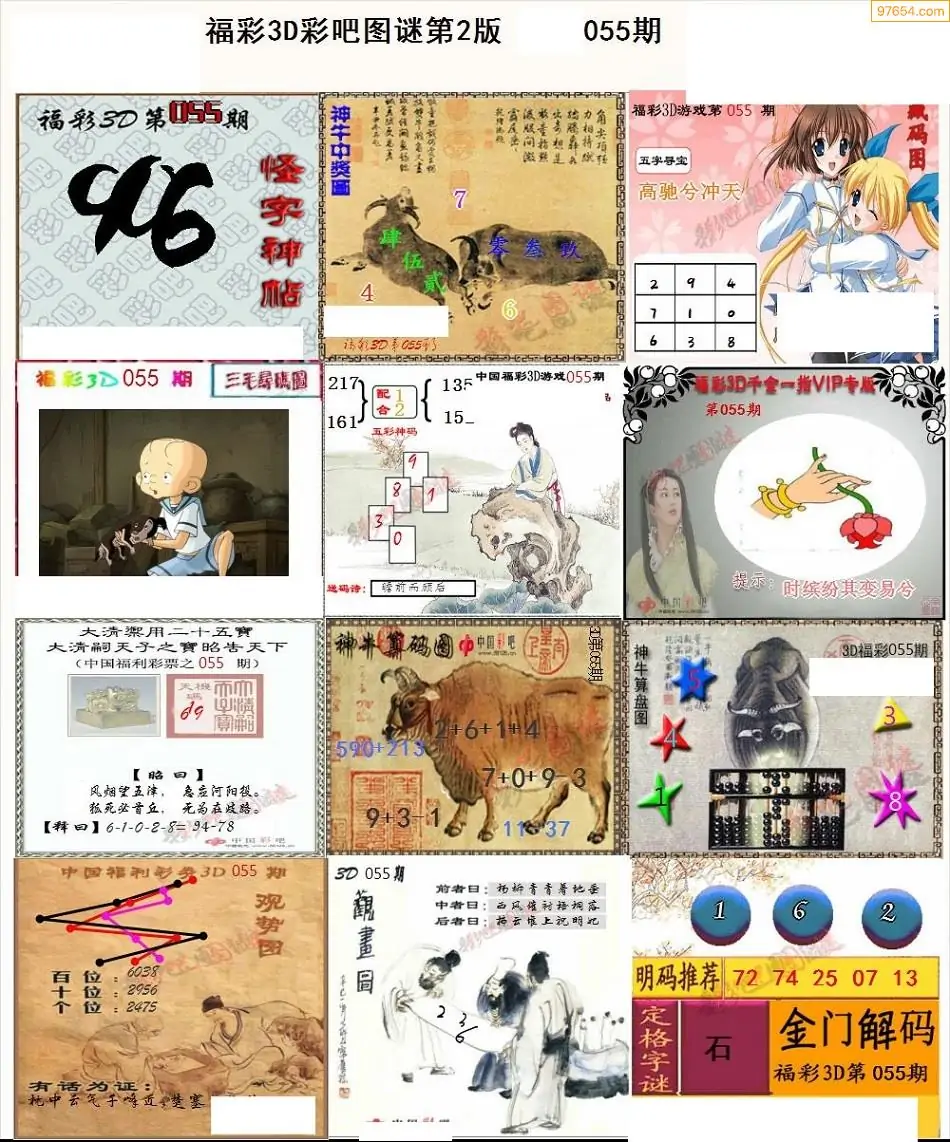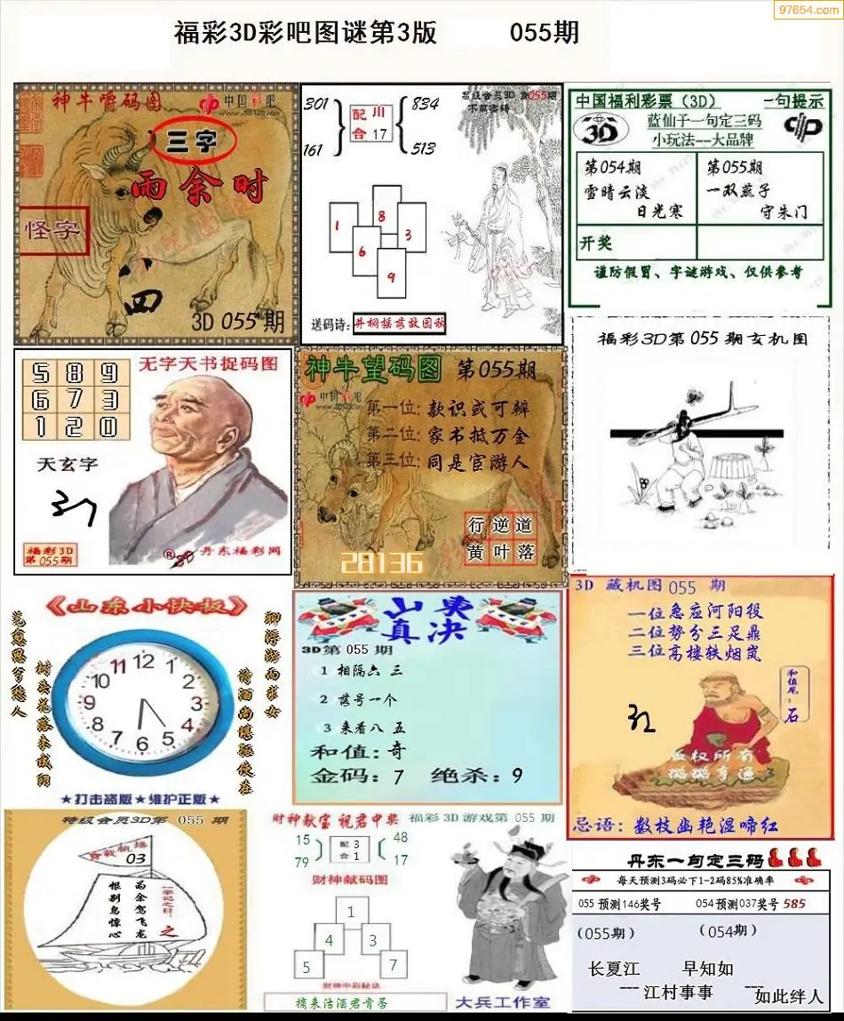 福彩3D055期天牛彩吧套图整合总汇
