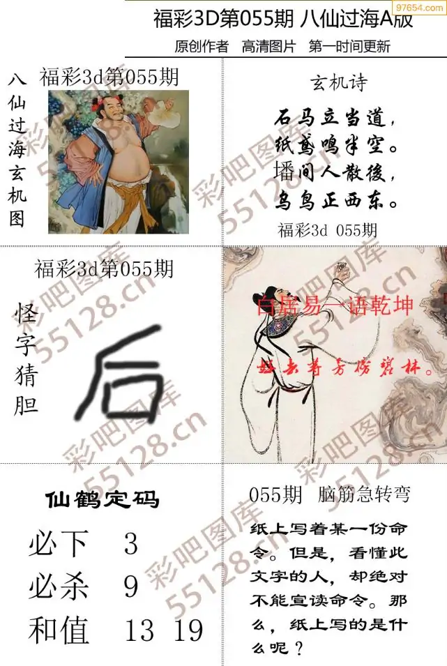 055期福彩天机壁怪字图