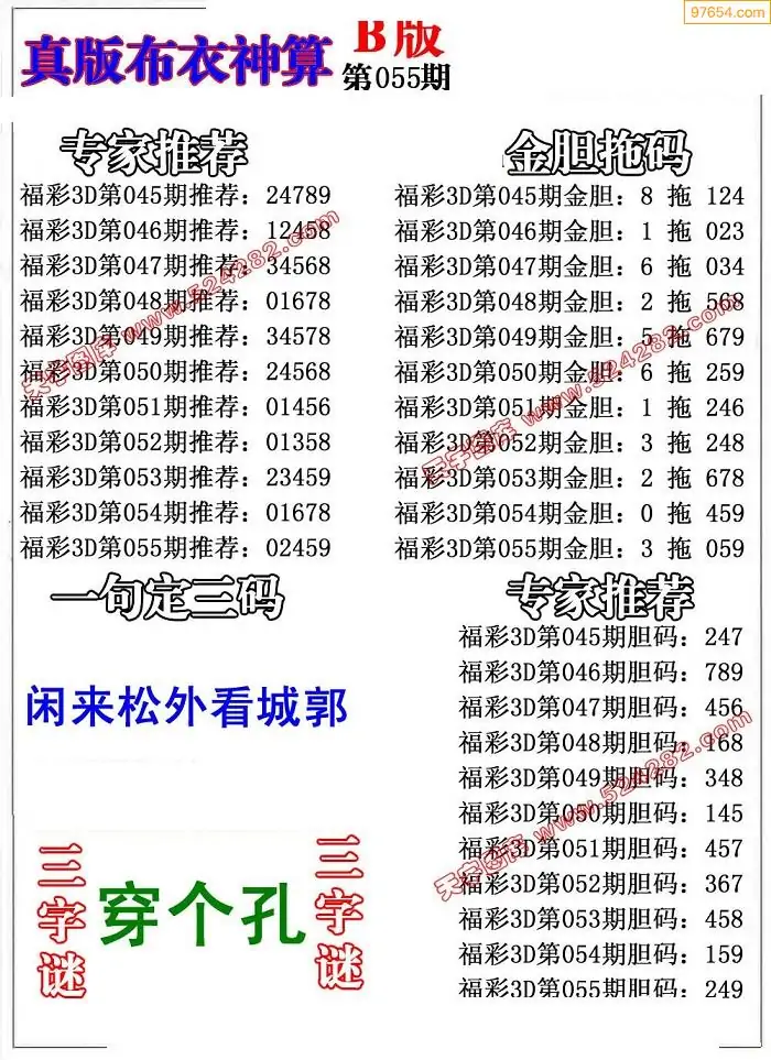 福彩055期3d真精华布衣+布衣早报(转载)