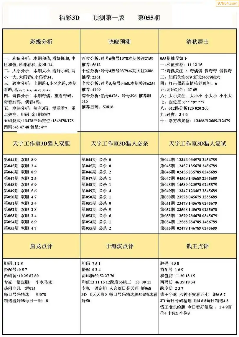福彩3D055期天牛彩吧套图整合总汇