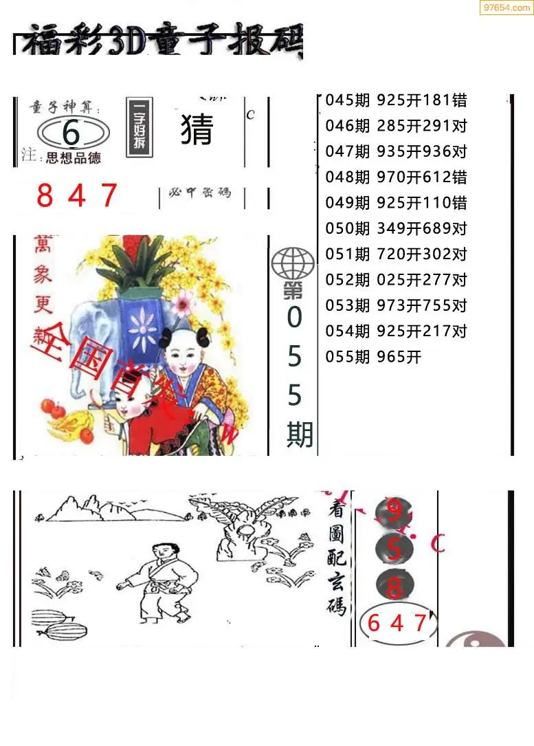 26055期3d正版童子报码图 (原创)