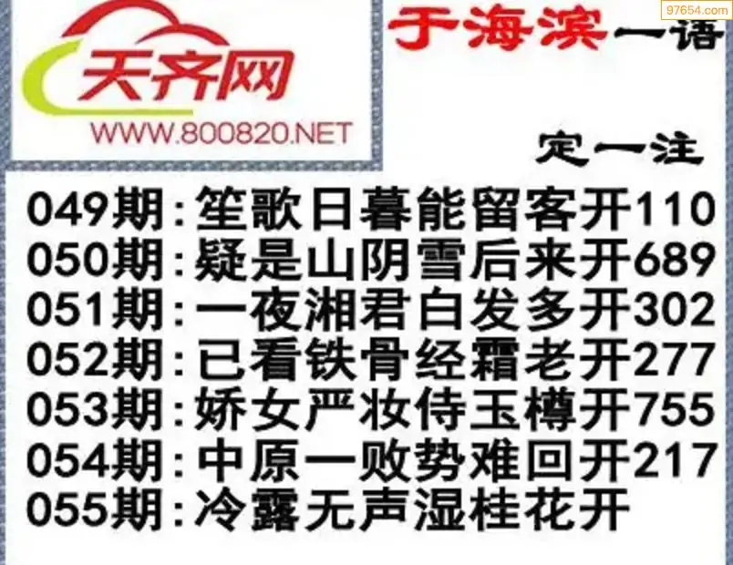 于海滨福彩3D26055期一语定一注